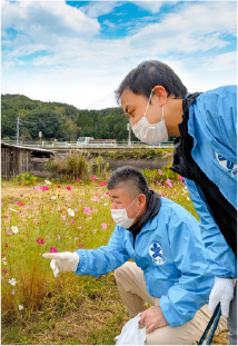 コスモスにうっとりのやさしいアニキたち。建物内の仕事が多いので、季節の移ろいをゆっくり感じられるのはなんかちょっと嬉しい。
