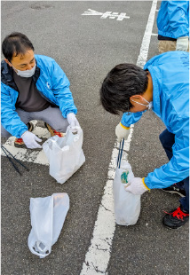 さらにゴミを拾いながら撮影していると理事長夫妻に遭遇。