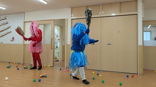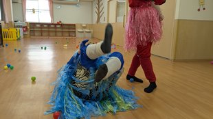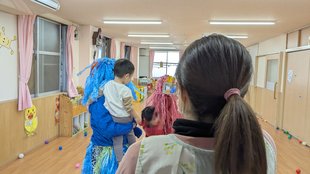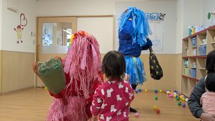 豆に見立てたボールをぶつける子ども、そんなことをしたらかわいそうと投げるのを躊躇する子ども、ただただ怖がって泣き出す子ども。