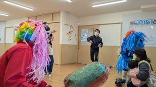 親和会の病院内託児所「ぽっぽ保育園」で、毎年恒例の豆まきを行いました。