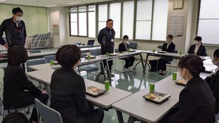 人事総務管理用システムの登録や、雇用契約についてのお話、ユニフォームの採寸などを行い、最後は職員を交えての食事会(…弁当ですが)。